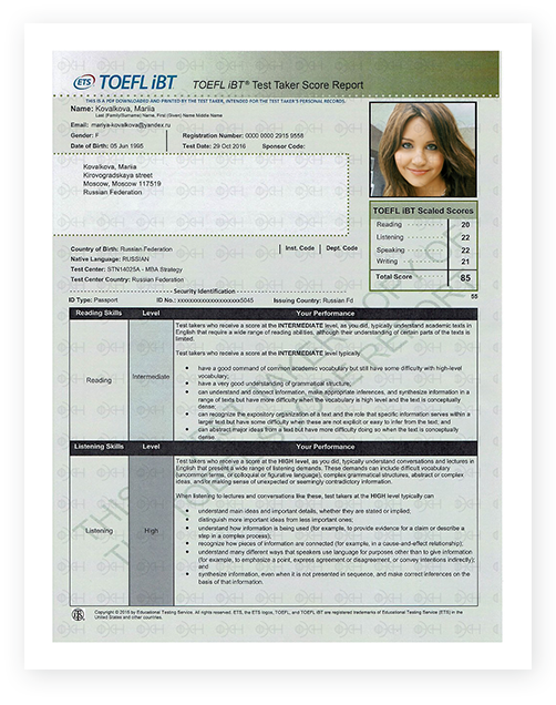 After your order is placed it takes just few days for us to get your details in the system. Once your details are imputed in the system it will be in the TOEFL web sites/system once and forever and will appear REAL, LEGIT and VERIFIABLE.